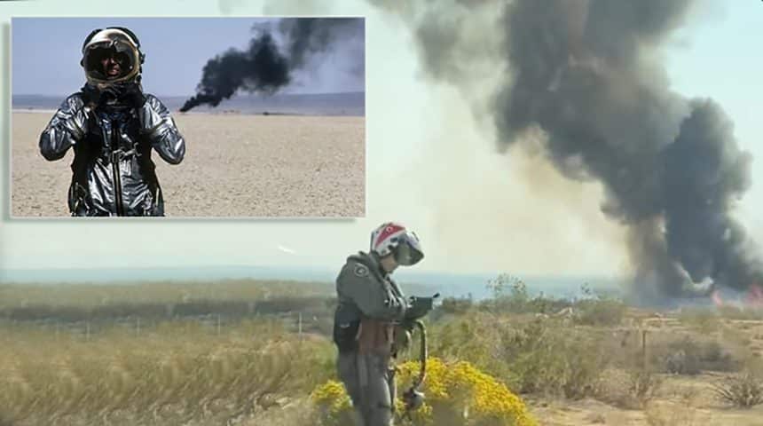 What is even more worth of note is the fact that the image of last week’s crash inadvertently mirrors a pretty famous scene from the movie โThe Right Stuffโ, that depicts a real accident occurred to aviation legend Chuck Yeager on Dec. 10, 1963, during an attempt to reach an altitude record.