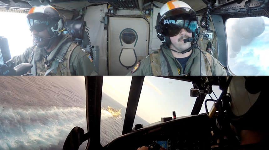 The following video shows the last few minutes of one of the daily sorties flown by a C-2A(R) Greyhound of the Fleet Logistics Support Squadron 40 (VRC-40), also known as the “Rawhides”, usually from Manama, Bahrain, to the USS Harry S. Truman aircraft carrier operating somewhere in the Persian Gulf, in the 5th Fleet AOR (Area Of Responsibility). VRC-40 is a United States Navy fleet logistics support squadron based at NS Norfolk. It is one of only two active fleet logistics squadrons in the Navy, the other being VRC-30. Both Squadrons support aircraft carriers at sea across the world.