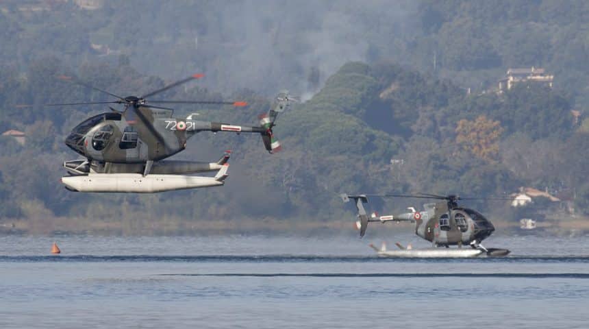 At the beginning of November, two NH-500E helicopters (designated TH-500B by the Italian MOD Mission Design Series), belonging to the 72ยฐ Stormo (Wing) of the Aeronautica Militare (Italian Air Force) based at Frosinone Air Base, deployed to Vigna di Valle to carry out training activity over Lake Bracciano, some 30 kilometres to the northwest of Rome, Italy.