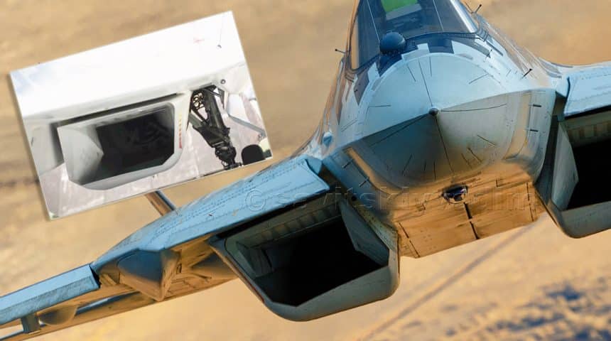 As we already reported, the Su-57 uses a S-duct air inlet which does not cover the entire engine faces, as done for the F-22 Raptor and the F-35 Lightning II, leaving it exposed to radar signal reflection. The problem was said to be mitigated by a radar blocker that, however, was never seen on the prototypes.