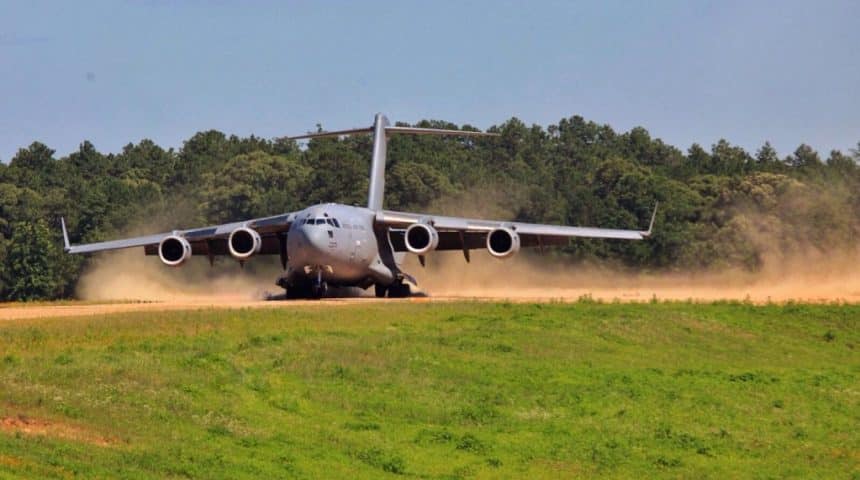 SPRO involve operating from runways constructed from non-permanent materials, such as gravel, dirt or even packed ice and snow. This capability was included in the Globemasterโs design since the beginning, as it was built to carry outsized loads, which could not be carried by a C-130, to austere locations in an operational theater. The U.S. Air Force frequently practiced these operations in a training environment in locations like the Nevada Test & Training Range and the National Training Center at Fort Irwin (California), but they also used it during real operations like happened for example in Syria in 2018 and in 2019.