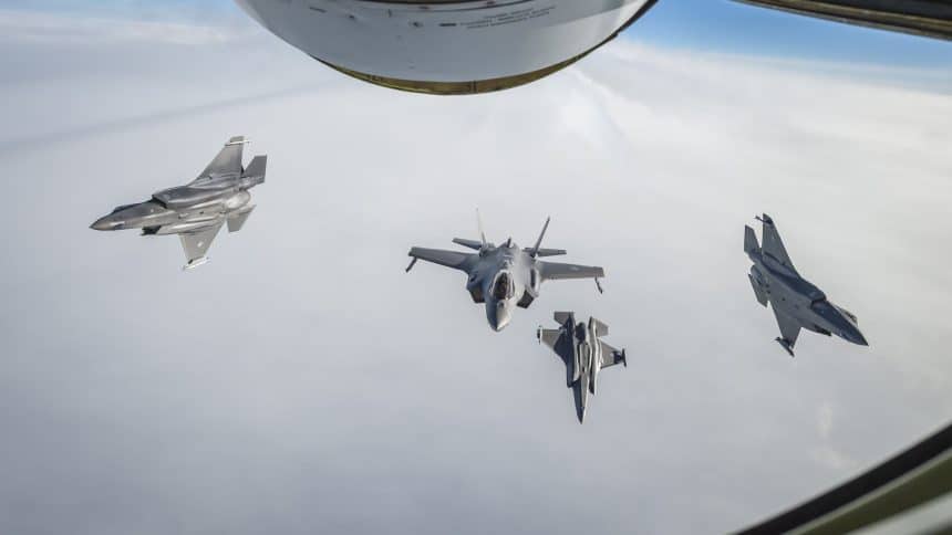 Last week, a C-135 from Air Refueling Squadron (ERV) 4/31 “Sologne” from Istres Air Base 125, carried out an aerial refueling mission using the flying boom to refuel, for the very first time, four F-35As from the Royal Norwegian Air Force supporting NATO Icelandic Air policing.