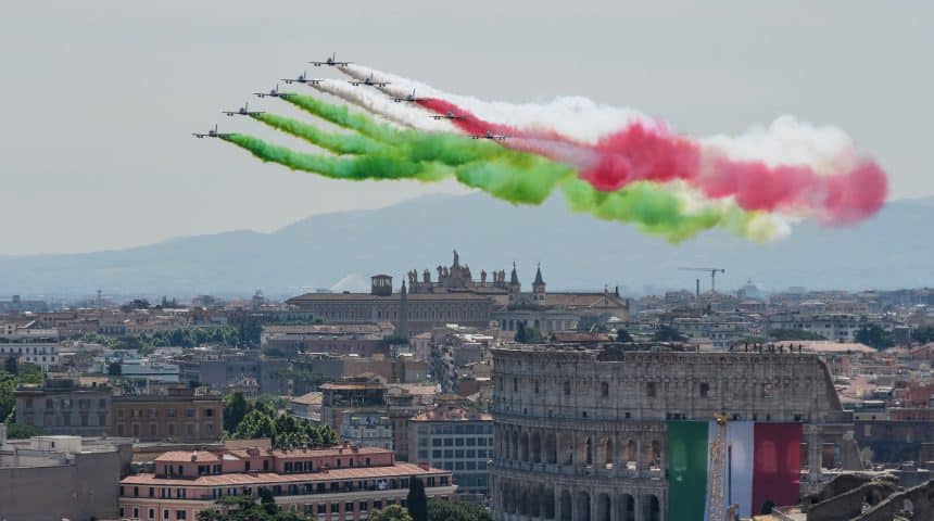 The Frecce Tricolori is the Italian Air Force aerobatic display team. Itโs the worldโs largest military display team.