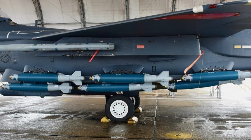 The U.S. Air Force published an interesting photo of a recent test performed by the 85th Test and Evaluation Squadron, showing an F-15E Strike Eagle (on loan from the 40th Flight Test Squadron, the same which will receive the first F-15EX) about to fly with six inert GBU-38 JDAMs on a single side of the aircraft on Feb 22, 2021. The shape of a bigger GBU-31 can be seen on the other side of the aircraft.