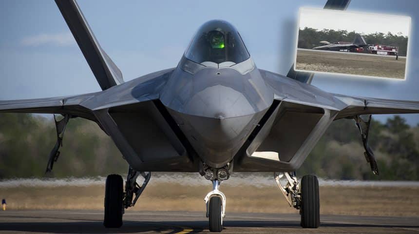 “The F-22 experienced an in-flight emergency. The aircraft landed safely. There was one person on board. Fire crews responded immediately and the pilot was transported to flight medicine for an evaluation.An investigation into the circumstances surrounding the mishap is underway.”