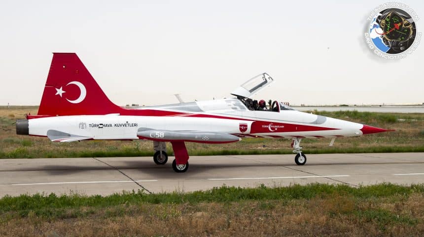 Based at 3rd Main Jet Base Command Konya, an airfield in the Central Anatolia region, famous for being the headquarters of the Anatolian Eagle exercise series, the Turkish Air Force demo team was formed on Nov. 7, 1992 and was named the Turkish Stars on Jan. 11, 1993. The team has a full squadron status and is designated the 134 Akrotim Filo (134th Aerobatic Team Squadron). The team has always flown the NF-5 Freedom Fighter. The first display, with four aircraft took place on Jun. 19, 1993; since 2004, the show is carried out with 8 aircraft.