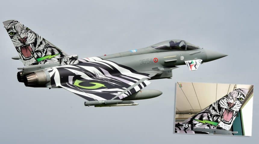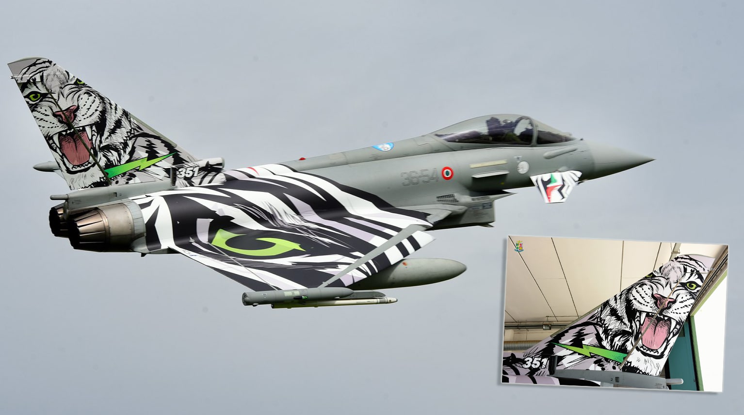 The aircraft presented by the Italian Air Force is an F-2000A (as the single seaters are designated in Italy) assigned to the 12ยฐ Gruppo (Squadron) belonging to the 36ยฐ Stormo (Wing) from Gioia del Colle AB, in southeastern Italy. Although its insignia does not feature a Tiger but the famous prancing horse, the squadron was immediately issued a NTM Full Member status in 2002, when it was assigned the 351st Tiger flight (whose emblem is indeed a Siberian/White Tiger) after the disbandment of the 21ยฐ Gruppo, a full member of the NATO Tigers Association since the late 1960s.
