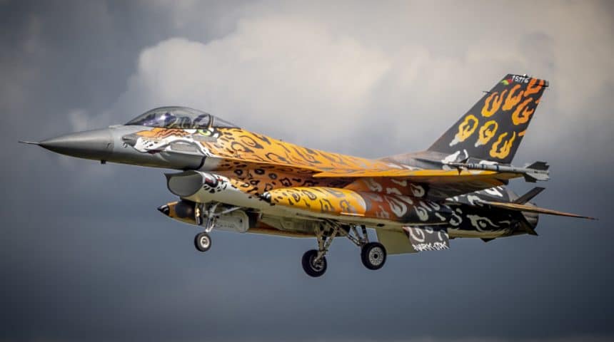Among the most interesting, eye-catching liveries of NTM 21, we canโt but mention the one of the Italian Air Force Eurofighter Typhoon with the 12ยฐ Gruppo (Squadron) with the Siberian/White Tiger as well as the host nationโs F-16 MLU jets: the full Tiger special color of the Esq 301 along with the other F-16 Viper sporting the 50th anniversary tail.