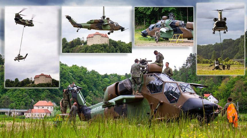The recovery operation of the stranded Spanish Army Tiger involved a Spanish CH-47D Chinook (ET-419) that landed in Cerklje ob Krki AB, Slovenia, in the afternoon on Friday May 21. Spanish flight technicians removed the main rotor blades, the horizontal tail and other parts from the Tiger and prepared the helicopter for the airlift which was carried out on Saturday afternoon.
