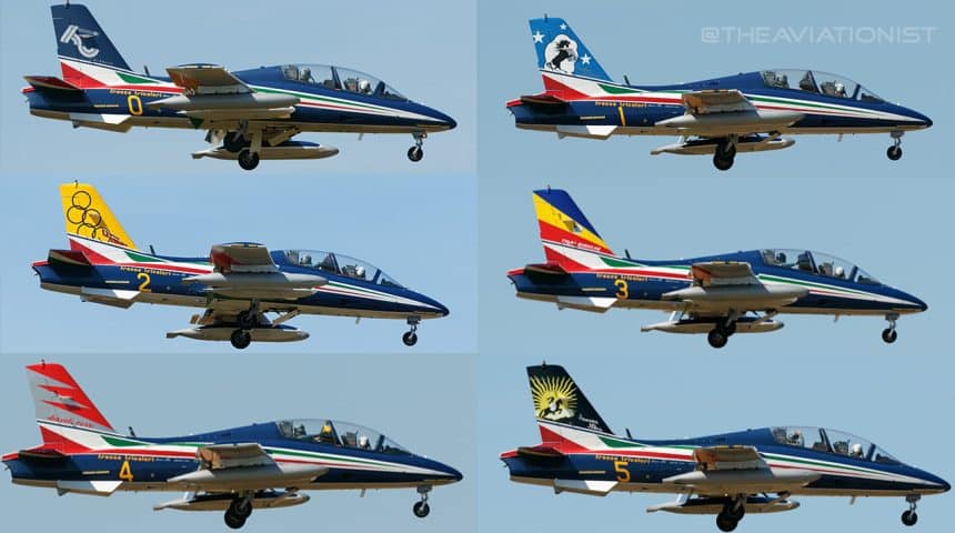 The new special tails celebrate the 60th anniversary of the Italian Air Force Frecce Tricolori display team.