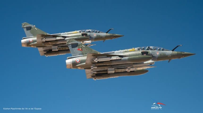 The goal of this deployment was to test the Mirage 2000D RMV in realistic combat conditions in hot weather, as well as testing the new CC422 cannon pod in the same conditions. During their stay, the upgraded aircraft carried out various missions in coordination with the Mirage 2000-5 of the Escadron de Chasse 3/11 “Corsica” and Forward Air Controllers (FAC), testing in demanding climatic conditions the entire โecosystemโ of the aircraft, including support equipment, mission planning and debriefing systems and so on.