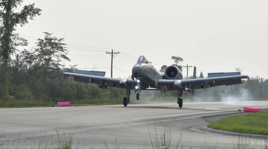 The U.S. Air Force operated some of its aircraft from a state highway as part of the Agile Combat Employment concept during exercise Northern Strike 21. According to the press release, this was the first time in history that the Air Force has purposely landed modern aircraft on a civilian roadway in the United States, with four A-10 Thunderbolt IIs and two C-146A Wolfhounds landing on the Michigan State Highway M-32 near Alpena on August 5, 2021.
