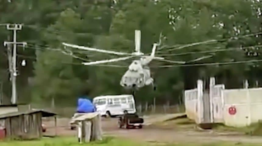 Three injured as Mi-17 collides with bus during crash landing in Hidalgo, Mexico.