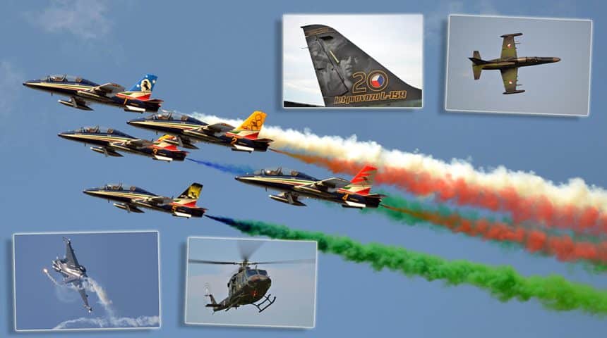 Five of the MB339s showed their special tail arts, dedicated to the five Italian Air Force aerobatic teams that represented Italy before Frecce Tricolori were established. The team is celebrating their 60th birthday this year. The public was thrilled by the many acrobatic figures they performed.