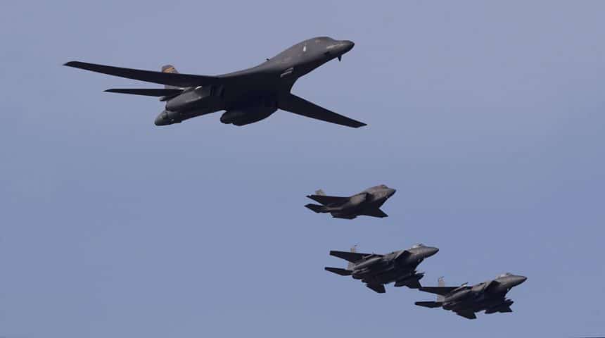 The B-1 flew with the rest of the “dissimilar formation” over the Imperial War Museum Duxford, the Cambridge American Cemetery and Memorial (a World War II American military war grave cemetery) at Madingley in Cambridgeshire, UK, as well as RAF Marham in Norfolk, RAF Lakenheath and RAF Mildenhall, in Suffolk.