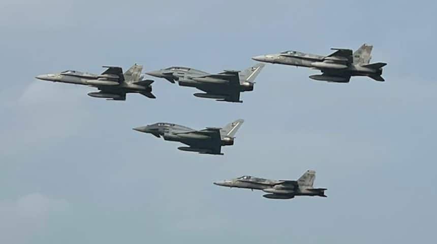 As shown by photos and videos, the two Typhoons performed several flypasts over the city, first in formation with three F/A-18 Hornets fighter jets and later with a KC-130J tanker, before completing the parade with some solo flybys at low altitude. As you may recall, we also posted on our social medias pages some pretty cool videos of the flypast recorded from inside the Typhoonsโ cockpit.