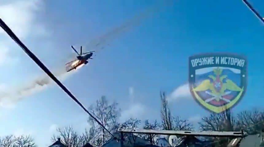 Someone pointed out that the Russian helicopter crews were just getting rid of the munitions they carried. However, footage captured during exercises in Russia clearly shows that this engagement method is a part of the pilot’s training curriculum.