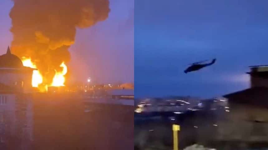 Another video of the air strike by two Ukrainian helicopters on the oil storage facility in Belgorod. https://t.co/JPQfyGYkX2 pic.twitter.com/SpgIrXhCSD