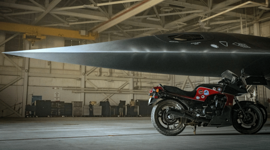 Interestingly, Kawasaki Motors Corp. press release also include an interesting image, featuring the nose section of a sleek, stealthy, hypersonic aircraft (with “Captain Pete Mitchell ‘Maverick'” written on the canopy rail) and, once again, we can’t but notice it seems to have been inspired by the concept images of the SR-72, released by Lockheed Martin in 2013.