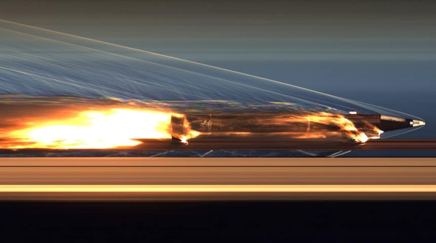 Hypersonic air-breathing vehicles utilize air captured from the atmosphere to achieve sustained propulsion without the need of rotating parts. The fast-moving, compressed air flow coming through theย scramjet engineโs inlet is mixed with a hydrocarbon fuel and ignites, before being ejected trough a nozzle which propels the missile at a speed greater than Mach 5.