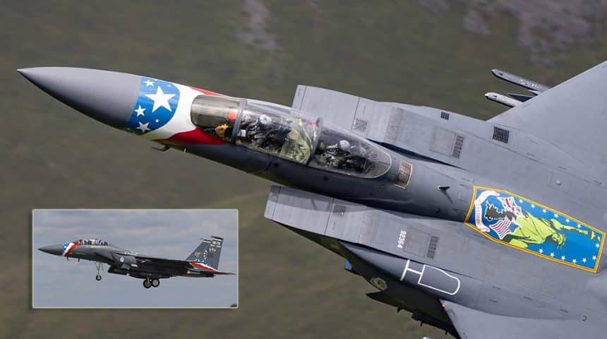 The U.S. Air Force 48th Fighter Wing just unveiled a new heritage F-15E Strike Eagle to celebrate the Wingโs 70th year of flight operations, as well as the USAFEโs 80th anniversary and the Air Forceโs 75th anniversary. The jet was officially unveiled at RAF Lakenheath on July 12, 2022, and on July 14 flew through the famous Mach Loop in the Low Flying Area (LFA) 7, before landing at RAF Fairford for this yearโs Royal International Air Tattoo.
