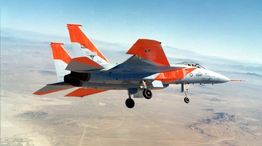 The first YF-15A prototype, painted in the USAF โAir Superiority Blueโ livery with orange flight test markings, still had the square wingtips and an unnotched stabilator. Those features were later modified as initial flight testing led to the discovery of heavy wing bending and buffeting well within the operational envelope. After testing the new โrackedโ wingtip configuration, the Air Force was completely satisfied with the buffeting characteristics.