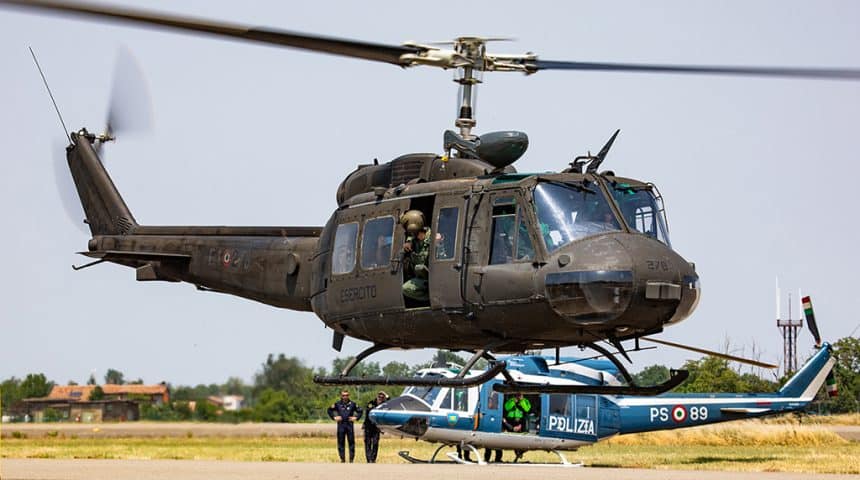 These are the aircraft assets involved: 1x HH-139B of the 15ยฐ Stormo (Wing), 1x TH-500 of the 72ยฐ Stormo, 1x TH-500 and 1x SIAI-208 of the Milan Linate Liaison Squadron of the Italian Air Force; 1x UH-205 of the 4th Aviation Regiment “Altair” of the Italian Army based at Bolzano; 1x EH-101 of the Sarzana Helicopter Station of the Italian Navy; 1x AW-139 of the 4th Helicopter Nucleus of the Carabinieri (Military Police) based at Pisa; 1x AB-212 of the 3rd Flight Department of the Polizia di Stato (Police) based at Bologna; for 1x AW-169 of the Rimini Air Section and 1x PH-139D of the Aviation Center of the Guardia di Finanza based at Pratica di Mare;ย 1x AW-139 of the Bologna Flight Department of the Vigili del Fuoco (Firefighters). Finally, 1x CN-235 VIGMA D-4 aircraft and 1x NH-90 helicopter of the Spanish Air Force.