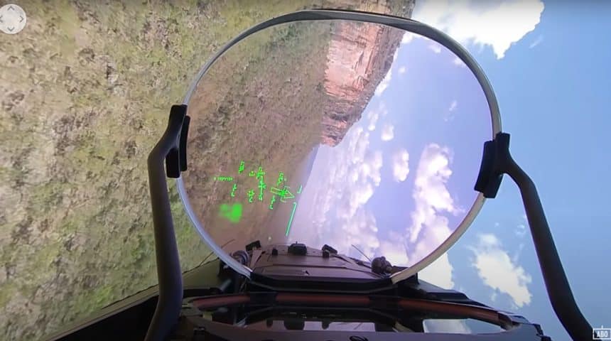 Some of the details (like the information on the kneepad and some data in the Head Up Display) have been blurred but you can get a really good idea about what it looks like to fly at 250 feet and 470 knots in a combat aircraft.