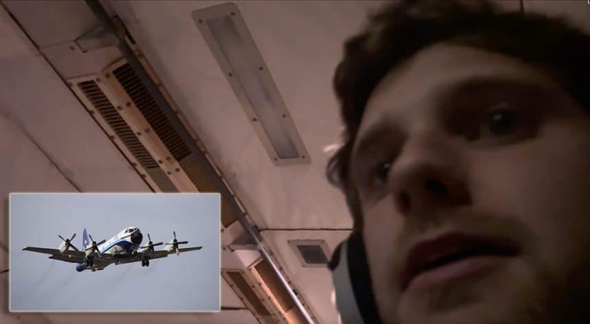 NOAA operates two WP-3D Orion weather surveillance and reconnaissance aircraft that actually fly directly into hurricanes to gather important data about the speed, strength, size and meteorological characteristics of a hurricane. The critical data collected on board the WP-3D weather reconnaissance flights is used to predict the storm intensity and track and to study storm dynamics for future forecasting. But as you can see from Underwoodโs video, itโs not exactly first-class cabin style flying.