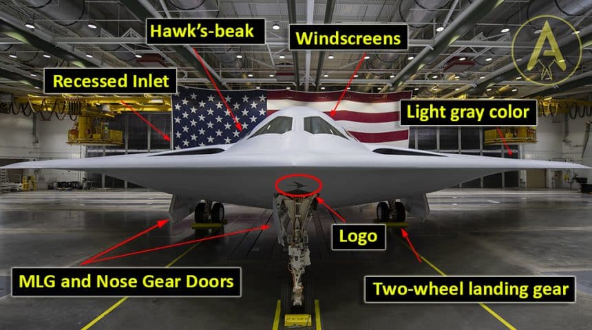 - The B-21 features different inlets config (and blended conformal engine nacelles we can’t see from the front angle). The hd version of the front photo released by the U.S. Air Force reveal a splitter plate in the inlet.