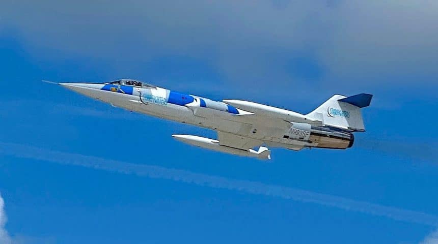 For its return to flight, the N993SF was flown by Piercarlo โCaponeโ Ciacchi, Director of Flight Operations at Starfighters Aerospace. As already explained many times here at The Aviationist, Ciacchi is a former Italian Air Force F-104 pilot who, among many other things, achieved a notable record flying the 9-99, the last F-104 in special color scheme, asย โPicca 21โ for 2 hours and 50 minutes in a Tip + Pylon configuration during his โfiniflightโ (last flight on the type) on Mar. 26, 2004.