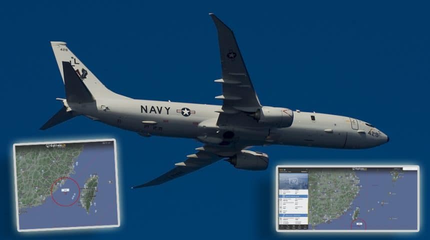 China protested after a U.S. Navy P-8, tracking online, flew over Taiwan Strait.