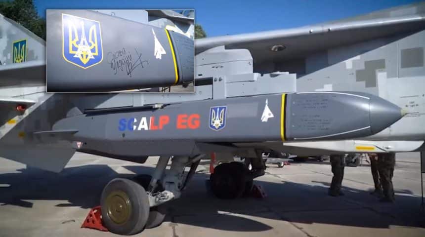 The SCALP EG missiles promised by French President Emmanuel Macron to Ukraine in the last few months are finally in country, as shown by videos released on social media. Ukrainian President Zelensky was seen signing one of the missiles during a visit to a Su-24 unit. While the date of the video is unknown, it was released just as new strikes with cruise missiles were performed against Crimean bridges.
