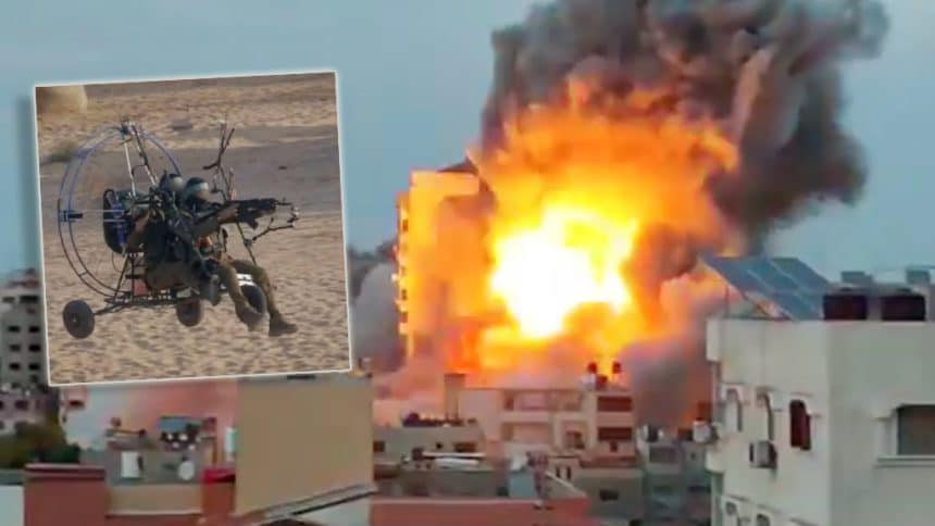 The first moments of the infiltration of a number of Qassam Brigades fighters using motorized hang gliders to infiltrate southern Israel. pic.twitter.com/CVUz5u9pqw