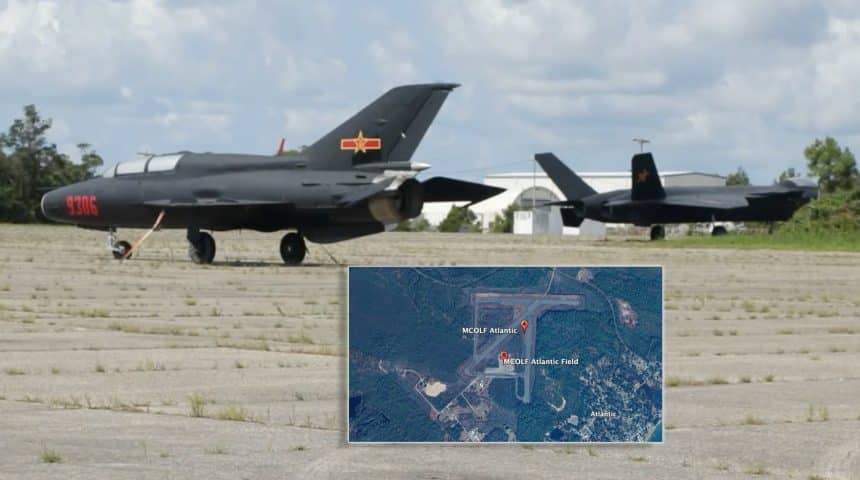 In the end, at least two J-7s have emerged at MCOLF Atlantic, where U.S. Marine Corps regularly train. Again, the role of the mock ups is not clear, although it seems quite likely that they are used for visual or sensor training during simulated Indo-Pacific theatre operations.