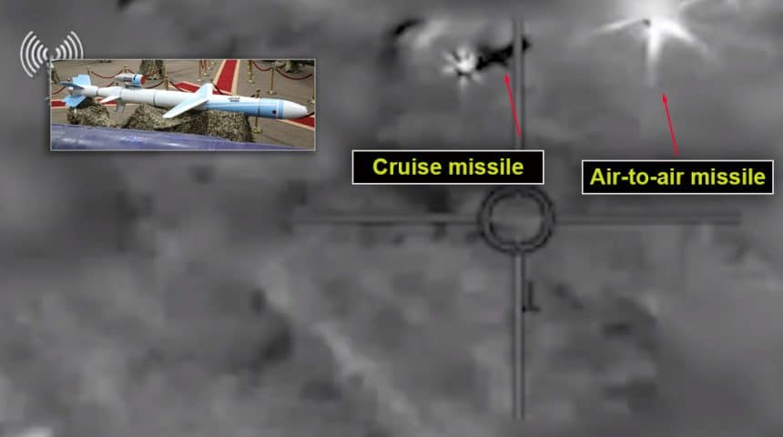 The IAF did not release other details, however in a post on X (formerly Twitter) released a video recorded either by the helmet mounted display or the Electro-Optical Targeting System (EOTS). The video shows a jet powered (note the white hot area in the video where the engine would be) cruise missile with short wings, similar to ones used by the Iranian-backed Houthi militants in Yemen.