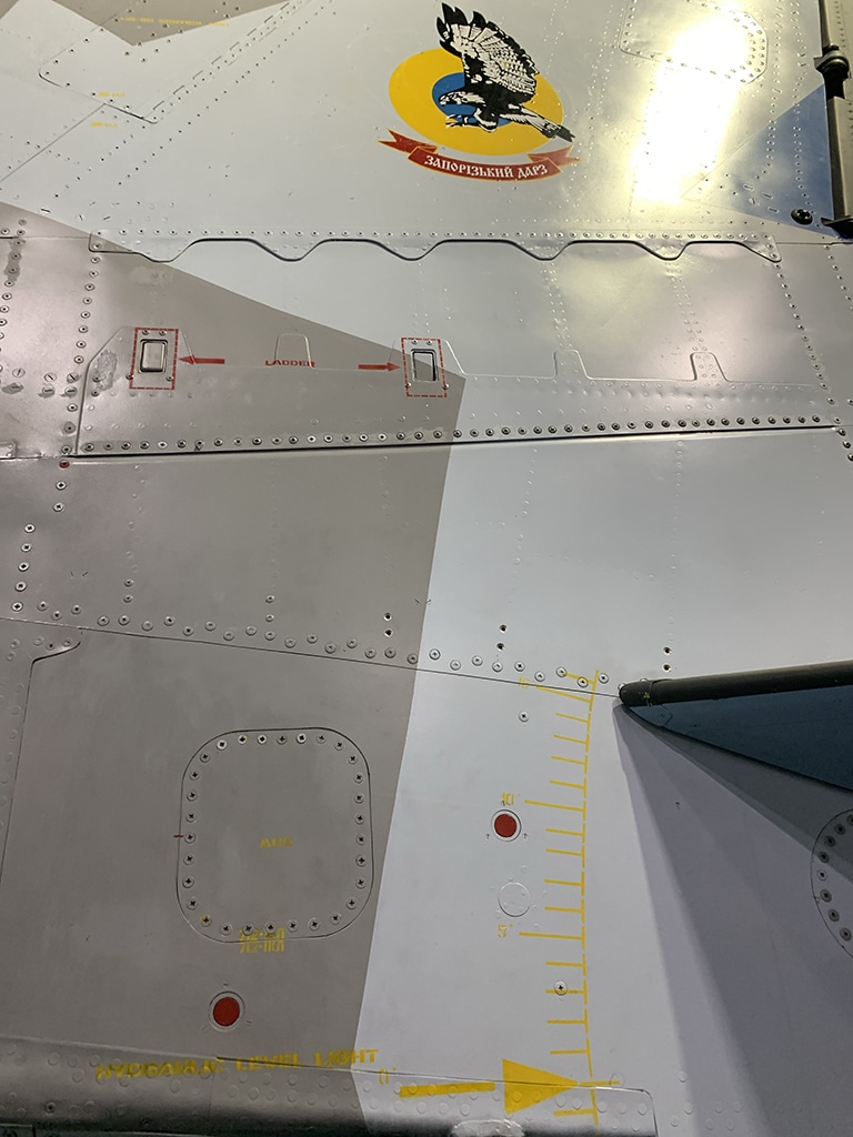 Our reader and friend Jason Camlic visited the NMUSAF and took the following images of the Su-27. All stenciling on the aircraft is in English. The Ukrainian badge, is the one of the Zaporozhye State Aircraft Repair Plant โMiGremontโ.