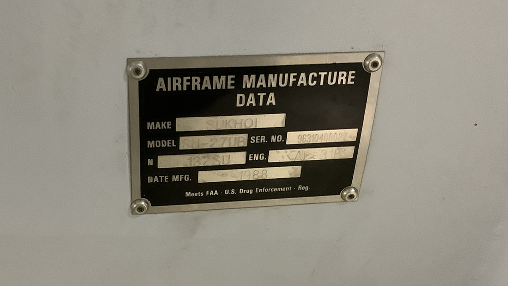 Originally in service with the 831st GvIAP of the Ukrainian Air Force in Mirgorod as โ61 Blueโ (c/n 96310408027, f/n 05-02, built on Mar. 30 1988), in 2009, it was bought, along with โ66 Blueโ, demilitarized and transported to the United States inside an An-124 to be delivered to Pride Aircraft in Rockford, Illinois. Once in the U.S., the Su-27s were given the civilian registrations N132SU and N131SU, respectively.