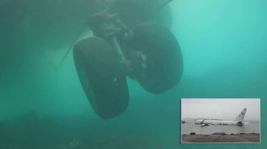 Thanks to the Navy Divers, we can have an underwater look at the P-8A in Kaneohe Bay, Hawaii.