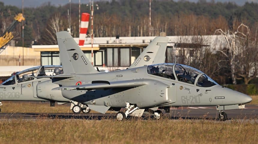 On Dec. 19, 2023, two new Leonardo T-345 trainers with the markings of the 61ยฐ Stormo (Wing), the Italian Air Force Flight School, based at Lecce-Galatina Airbase, in southeastern Italy, took off from Venegono airport, where the final assembly line of Leonardo Aircraft is located, to deploy to Pratica di Mare AB, near Rome, to join the RSV, the Test Wing of the ItAF.