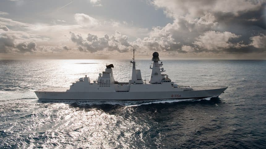 Nave Duilio, a destroyer of the Marina Militare, shot down a drone for self-defense.