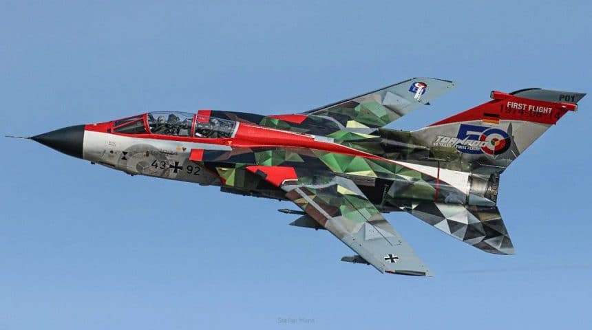 Airbus unveiled a Luftwaffe Tornado IDS with a new special livery for the 50th anniversary of the first flight of the European aircraft. The Tornado, with codes 43+92, is assigned to Taktisches Luftwaffengeschwader 33 at Buchel air base and shows elements from the past with a look to the future, as it combines parts of the prototype’s red and white livery, the grey livery currently used by the German Air Force and a splinter camo which reminds the old green camo.