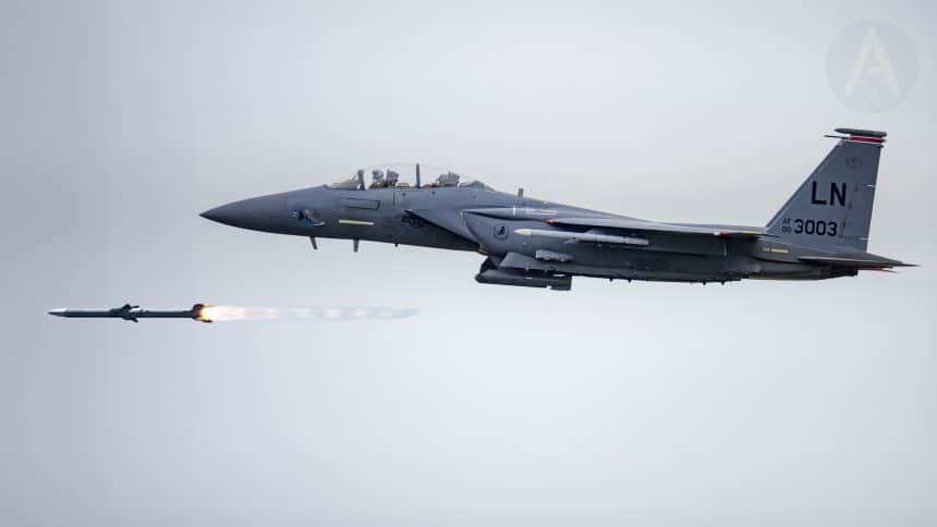 Images of the F-15Es deployed to the CENTCOM area of operations always show the Strike Eagles carrying two AIM-120 AMRAAMs (Advanced Medium Range Air-to-Air Missiles) and two AIM-9X Sidewinder AAMs (Air-to-Air Missiles) along with a Sniper ATP (Advanced Targeting Pod) and various JDAMs (Joint Direct Attack Munitions), although it is possible that the aircraft were launched with a different/specific loadout considering the need to counter a significant amount of incoming drones.