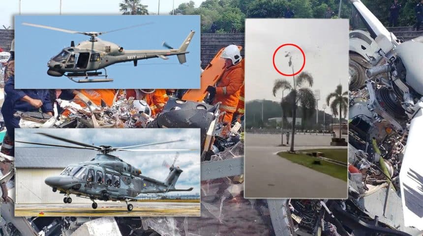 An AW139 and an AS555 crashed after they collided during the rehearsal of the parade for the 90th anniversary of the Royal Malaysian Navy.
