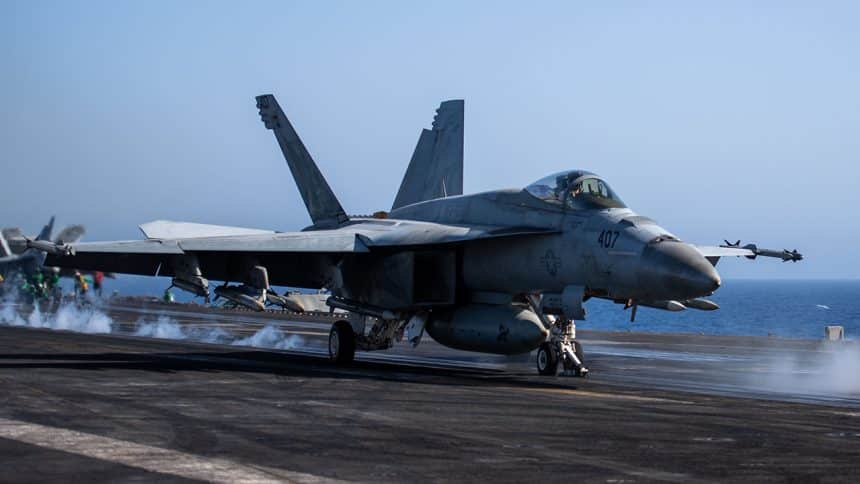 The focus on the air-to-air mission is clearly reaffirmed by new imagery just released by the U.S. Navy. In fact, some of the recent photos taken aboard USS Eisenhower show an F/A-18E Super Hornets of the VFA-105 “Gunslingers” and the VFA-83 “Rampagers” carrying 9 air-to-air missiles: five AIM-120 AMRAAMs and four AIM-9 Sidewinders.