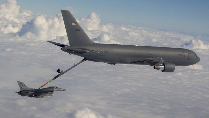 Airband listeners heard an F-16 pilot report โa chunk taken out of its spine due to a too close breakaway incidentโ during refueling operations with a KC-46.
