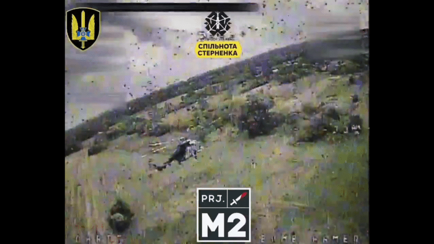 We recently reported on a similar video showing a collection of clips from three different FPV attacks on low-flying Russian helicopters, first by a drone approaching a Mi-8 from the left, then by an FPV attacking and reportedly hitting a Mi-28 attack helicopter on the tail, and finally a drone approaching from behind what appeared as another transport helicopter.