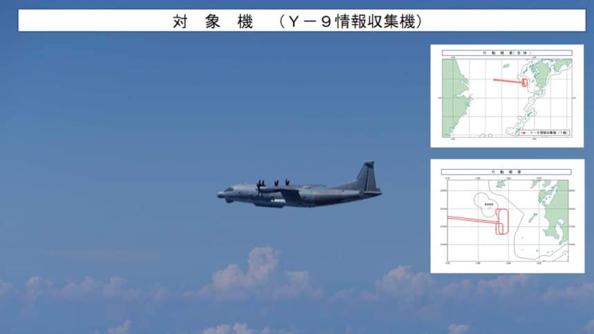 Japan Air Self-Defense Force (JASDF) aircraft assigned to the Western Air Defense Force were launched to intercept the aircraft and issued radio warnings to the Chinese intruder. After the Y-9 departed territorial airspace it continued on mission until around 13:15 local time, afterwards departing back towards the Peopleโs Republic of China.