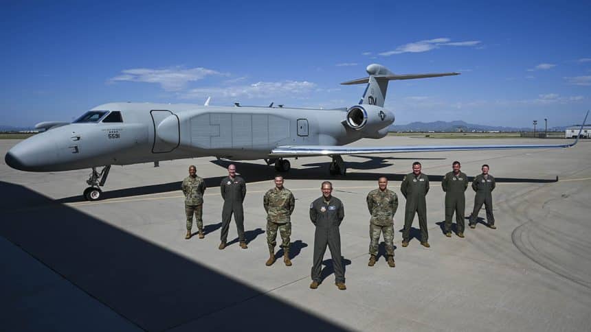 The EA-37B, a cutting-edge airborne electromagnetic attack system based on the modified Gulfstream G550 airframe, was officially delivered during a ceremony attended by by Gen. Ken Wilsbach, commander of Air Combat Command, alongside Lt. Gen. Thomas Hensley, commander of the 16th Air Force, and Col. Mark Howard, commander of the 55th Wing.