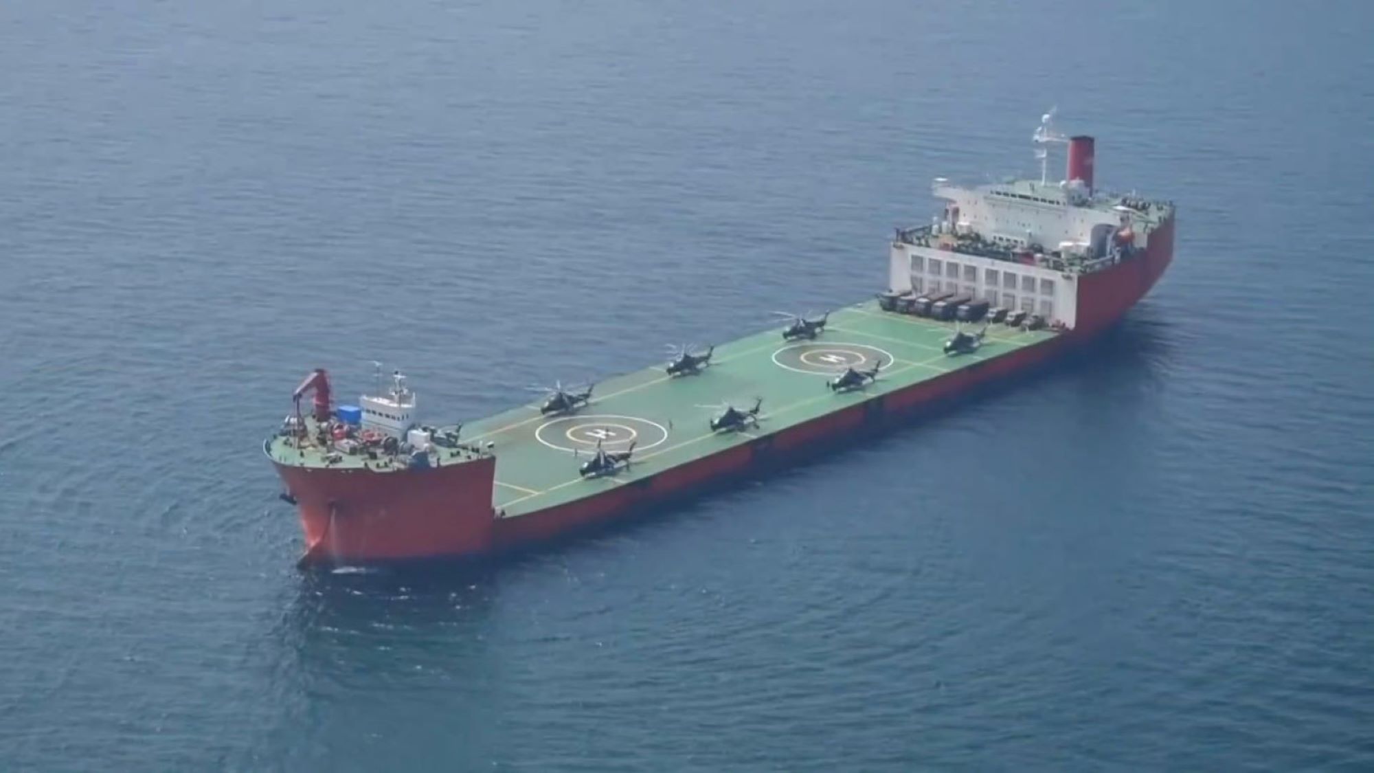 In another display of China’s civil-military fusion for its war efforts, the PLA’s (People’s Liberation Army) Z-10 attack helicopters were shown operating from what appears to be a civilian semi-submersible ship. The vessel is usually employed to transport oil and gas exploration platforms.
